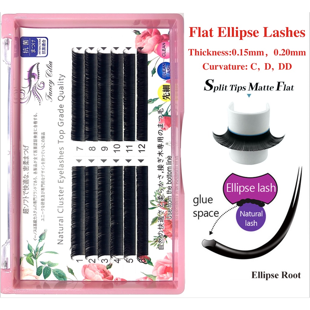 Không khí phẳng Ellipse Ghép lông mi Mờ Màu đen mờ Curl C D DD Độ dày 0,15mm Cảm giác không chạm Màu đen mềm mại tự nhiên Cá nhân Đôi Mẹo nhỏ Mở rộng lông mi phẳng free ship